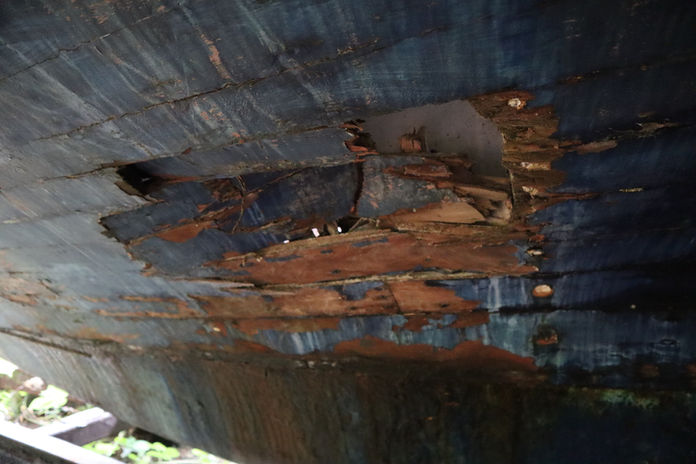 Pictured in 2011 in Lomax boatyard, Sarcelle presented a sad sight...
