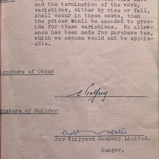 Built in 1950, S Class number six was commissioned by Ernest Palfrey of Belfast, Virginia Water to be precise (please see the next slide for her original specification). He owned the boat until 1959 when it was bought by Donald Dingwall. During this time, the boat moved to Winnipeg, Canada and a quick succession of owners then followed. In 1963, the boat was purchased by William Peterson of Toronto. Switching hands again, Scarlet Pimpernel moved to William Parker in 1968 and G. B Turner of Toronto in 1973. In '73, he wrote to the Shipyard Company seeking details of the first owner. Ronnie Slater told him he remembered the boat being built and that her topsides were scarlet with a gold cove line.