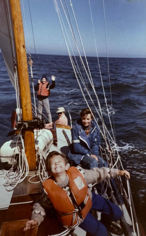 Little is known about the Bassett Family's ownership of Sorona, other than her owner Brian (of Ashbourne, Co. Meath) was a member of Skerries Sailing Club. He kept the boat on a mooring in the harbour just off the club. In his later years, he owned a Lochan and kept it at Poolbeg Yacht Club on the Liffey, Dublin. The corresponding photo is the family onboard circa 1979.